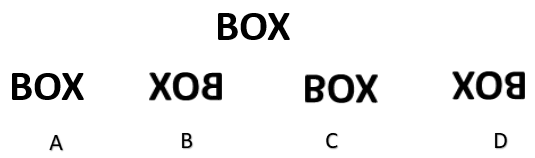 Welcome to your 05 Reasoning Free Name 1. There is a certain relation between two words given on one side of :: . Out of the below four alternatives, one word will have similar relation with the word on other side of :: Cobra: Snake:: Leopard : ?Deselect Answer Tiger Lion Cat Zebra None 2. Which one of the following is the mirror image of the given word? Deselect Answer A B C D None 3. Gurdeep drives a car to reach Fuelling station, from there, he turns his left and drives again. In which direction is he driving now? Deselect Answer North East South Can’t determined None 4. I am facing the Swimming Pool right now. If I make 270° turn in anticlockwise direction, in which direction I am facing now? Deselect Answer Petrol Pump Shopping Mall Swimming Pool Market None 5. Identify the figure that completes the pattern. Deselect Answer A B C D None 6. Which one of the following is the water image of the given word? Deselect Answer A B C D None 7. Choose the word which is least like the other words given below: Deselect Answer Screw Hammer Pin Needle Nail None 8. There is a certain relation between two words given on one side of :: . Out of the below four alternatives, one word will have similar relation with the word on other side of :: Soap: Wash:: Broom : ?Deselect Answer Clean Dust Sweep Floor None 9. Choose the correct option to fill the blank space. 2   3     5      ___   12Deselect Answer 4 6 8 9 None 10. Find the missing number, if same rule is followed in the given figure. Deselect Answer 15 19 21 11 None 11. Which of the following figures will come next? Deselect Answer A B C D None 12. There are seven blue and black colored blocks shown in the figure given below. If the height of the street light pole is 350 cm, then the height of the girl standing on the table is: Deselect Answer 120 cm 150 cm 170 cm 200 cm None 13. Find the missing number, if a certain rule is followed in the given figure. Deselect Answer 6 4 3 0 None 14. Find the missing number in the given pattern. Deselect Answer 2 4 6 8 None 15. What comes next in the given series? 15, 22, 17, 24, 19 ____________Deselect Answer 25 26 28 29 None 16. Which one of the following is the mirror image of the given word? Deselect Answer A B C D None 17. Which one of the following is the water image of the given figure? Deselect Answer A B C D None 18. Amount shown here is ________. Deselect Answer 12 72 82 62 None 19. Which one of the following is the water image of the given word? Deselect Answer A B C D None 20. Fill in the blank box to complete the given series. Deselect Answer ABD ABCD ABE ABCDE None of these None Time's upTime is Up!