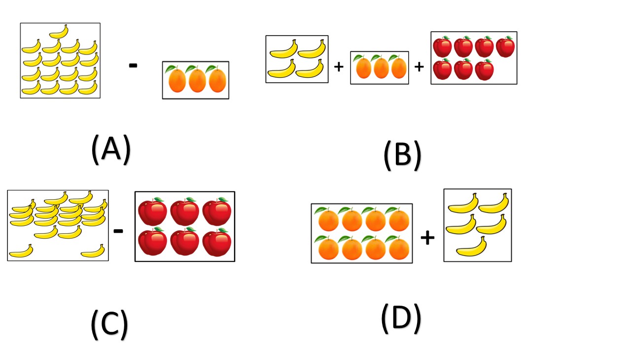 Welcome to your LKG & UKG Maths Free Name 1. Who has maximum number of mangoes? Deselect Answer Sneha Radha Rupa Shruti None 2. 77 come just after _________. Deselect Answer 76 78 77 None of these None 3. In the number 925, what is the face value of 9 ? Deselect Answer 900 9 ones 90 925 None 4. Deselect Answer > < = none of these None 5. What number comes after 86? Deselect Answer 85 86 87 99 None 6. Which is the smallest number? Deselect Answer 64 46 73 37 54 None 7. Deselect Answer 5 3 4 6 None 8. Read the number shown on the abacus and answer the question given below Deselect Answer 43 42 24 None of these None 9. Write the number for the expanded notation 700 + 70 + 7Deselect Answer 777 77 7 770 None 10. Write the expanded form of 754. Deselect Answer 7 + 5 + 4 700 + 50 + 4 70 + 50 + 4 700 + 5 + 4 None 11. Deselect Answer 47,49,15 47,49,51 47,48,51 None of these None 12. The expanded form of 182 is: Deselect Answer 100 + 80+ 2 1 + 8 + 2 1 + 80 + 200 None of These None 13. Deselect Answer > < = none of these None 14. Which is the tenth month of the year? Deselect Answer September October November December None 15. Deselect Answer 90 92 93 91 None 16. Deselect Answer 38 37 41 39 None 17. Which is the smallest number? Deselect Answer 74 47 69 89 98 None 18. The number name for the number 72 is _______. Deselect Answer Twenty Seven Seventy Two Seven Twenty Two Seventy None 19. Deselect Answer 8 9 14 None of these None 20. What number comes before 86? Deselect Answer 85 86 87 99 None